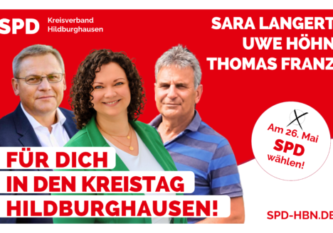 Der SPD Ortsverein Hildburghausen geht mit einem jungen Trio an den Start Hannes Rottmayer, Sara Langert und Marcel Hofann kandidieren für den Stadtrat Hildburghausen. „Hildburghausen ist ein Ort mit vielen wunderbaren und einzigartigen Menschen, Orten und Momenten. Wir möchten die regionalen Vorzüge hervorheben, vorhandene Ressourcen sichtbar machen, kritische Punkte benennen und diese lösungsorientiert diskutieren. Lassen…
